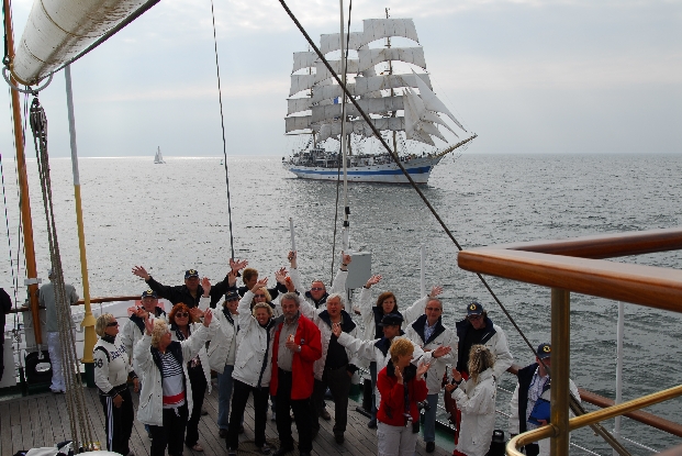 An Bord von Mir und Dar Mlodziezy fieberten jeweils 50 Führungskräfte aus Wirtschaft und Kultur. Den Pokal holte sich letztlich die russische Mir, doch Gewinner ist jeder, der diese Regatta erlebt hat.